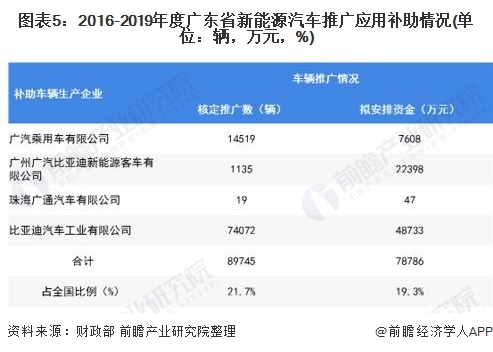 從2016-2019年度廣東省新能源汽車推廣應(yīng)用的具體補(bǔ)助對(duì)象來看,包括廣汽乘用車有限公司、廣州廣汽比亞迪新能源客車有限公司、珠海廣通汽車有限公司和比亞迪汽車工業(yè)有限公司四家企業(yè),從四家企業(yè)的擬安排資金來看,比亞迪汽車工業(yè)有限公司達(dá)到的補(bǔ)助最多,達(dá)到48733萬元,新能源車輛核對(duì)推廣數(shù)達(dá)到74072輛。整體來看,比亞迪是廣東省新能源汽車推廣應(yīng)用補(bǔ)助的主要企業(yè)。