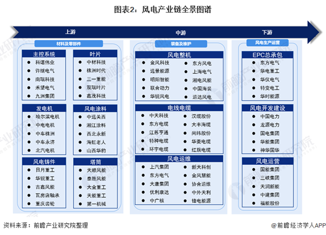 中游整機環(huán)節(jié)的金風(fēng)科技、明陽智能、遠景能源、聯(lián)合動力、上海電氣等,風(fēng)電電纜環(huán)節(jié)的中天科技、哦東方電纜等;風(fēng)電運維環(huán)節(jié)的大唐集團、中廣核等;
