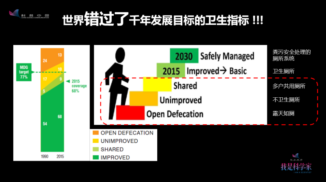 盡管在實(shí)現(xiàn)這個(gè)千年發(fā)展目標(biāo)的進(jìn)程中,最終的目標(biāo)沒(méi)有實(shí)現(xiàn),但是廁所的覆蓋率還在逐漸增加。反映到兒童死亡率上,即是死亡率的逐年下降。這是一個(gè)大好事,也給我們很多動(dòng)力去堅(jiān)持不懈地做廁所的事情。更好的消息是——我們國(guó)家在千年發(fā)展目標(biāo)里發(fā)布了白皮書(shū),宣布中國(guó)滿(mǎn)足了千年發(fā)展目標(biāo)的要求。