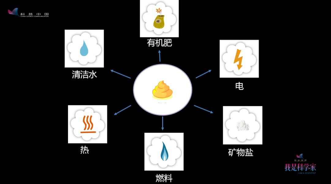 糞便可以做肥料,但是要處理,保證它安全。還有氮肥、磷肥、鉀肥,我們種莊稼的時(shí)候加了這些肥料,長(zhǎng)成了糧食,長(zhǎng)成了蔬菜;或者通過(guò)喂飼料,養(yǎng)成了雞鴨魚(yú)肉。這些元素都進(jìn)到你的家庭,然后90%又跑到糞便里去了。