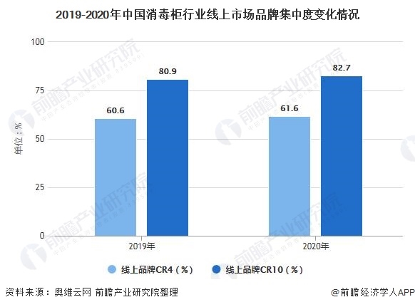 我國消毒柜市場品牌集中度較高,行業(yè)競爭激烈,近年來,隨著人們收入水平的提升,人們對產(chǎn)品品質(zhì)的要求不斷提高,頭部品牌消毒柜企業(yè)的產(chǎn)品質(zhì)量和口碑經(jīng)受住多年的市場考驗已經(jīng)獲得消費者的認(rèn)可,因此頭部品牌的市場份額仍在不斷擴(kuò)大,2020年我國消毒柜行業(yè)CR10持續(xù)提高,其中線上品牌CR10達(dá)82.7%,較2019年提高1.8個百分點,線下品牌CR10為92.8%,較2019年年提高1.4個百分點。