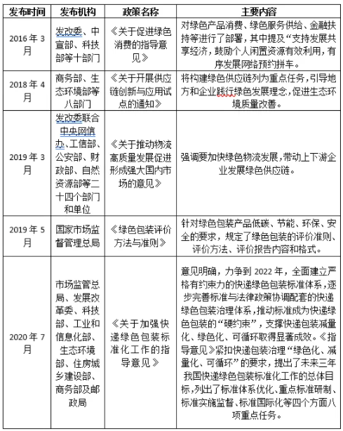 近年來(lái),對(duì)于電子商務(wù)行業(yè),我國(guó)政府部門發(fā)布系列相關(guān)政策,指引和倡導(dǎo)電商企業(yè)在綠色消費(fèi)、綠色包裝、綠色物流、綠色供應(yīng)等方面做出行動(dòng)來(lái)減少碳排放量。主要政策梳理如下: