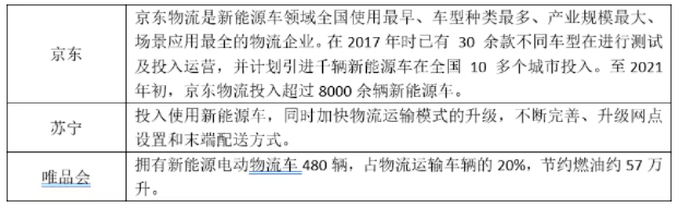 綠色物流即通過(guò)充分利用物流資源,采用先進(jìn)的物流技術(shù),合理規(guī)劃和實(shí)施運(yùn)輸、儲(chǔ)存、裝卸、搬運(yùn)、包裝、流通加工、配送、信息處理等物流活動(dòng),降低物流對(duì)環(huán)境影響的過(guò)程。各大電商企業(yè)堅(jiān)持綠色物流理念,探索綠色物流創(chuàng)新,打造綠色物流全過(guò)程?,F(xiàn)階段,多數(shù)電商企業(yè)在打造綠色物流的過(guò)程中主要采取的方式為更換運(yùn)輸車輛,采用碳排放量更低的新能源運(yùn)輸車輛,從而有效減少燃油消耗量,進(jìn)一步減少物流環(huán)節(jié)的主要碳排放量。