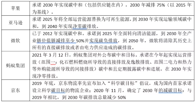 表6. 各大電商企業(yè)的減碳目標(biāo)