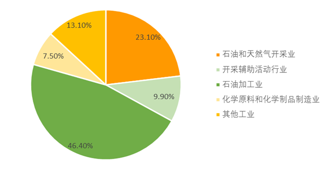 從盤錦的產(chǎn)業(yè)結(jié)構(gòu)變化來(lái)看,第二產(chǎn)業(yè)近年來(lái)在產(chǎn)業(yè)結(jié)構(gòu)中的占比保持高位并呈上升趨勢(shì),其中,石油和天然氣開采業(yè)、開采輔助活動(dòng)行業(yè)以及石油加工業(yè)等自然資源開采相關(guān)行業(yè)增加值在工業(yè)增加值中占比接近80%,可見依托自然資源開發(fā)的工業(yè)仍然是拉動(dòng)盤錦經(jīng)濟(jì)增長(zhǎng)的主要因素。