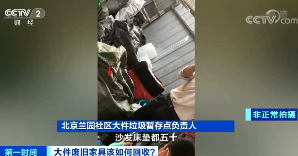 北京蘭園社區(qū)大件垃圾暫存點(diǎn)負(fù)責(zé)人:沒(méi)法上樓搬,就是拉走的錢(qián)。上海:小區(qū)設(shè)置廢舊家具臨時(shí)回收點(diǎn)