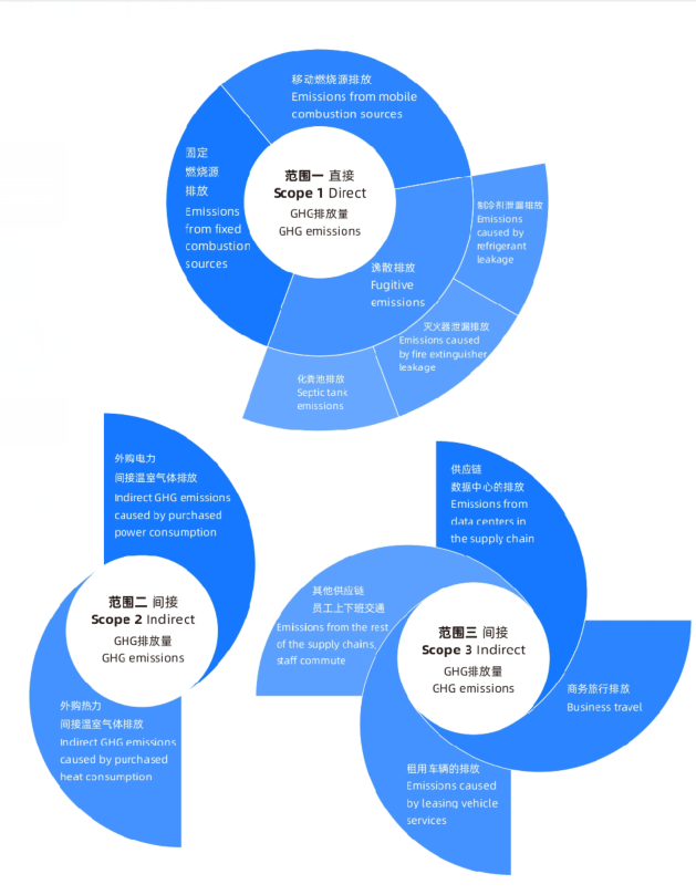 范圍三:供應鏈上的相關(guān)間接排放,包括租用數(shù)據(jù)中心服務、員工商務旅行、員工中通勤租用車輛等所導致的排放。