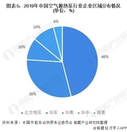空氣源熱泵需求主要集中在北方地區(qū),與企業(yè)區(qū)域分布重合