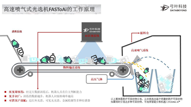 弓葉科技自主研發(fā)的智能垃圾分選裝備已實現落地應用,目前參與了國內多個垃圾處理項目,其中包含混合生活垃圾、可回收垃圾、廚余垃圾、餐廚垃圾、建筑垃圾等領域。同時,弓葉科技還將其剛推出的高速噴氣式光選機FASToAI運用到了醫(yī)療廢棄物處理領域中,幫助醫(yī)療機構及醫(yī)廢處置單位降本增效,實現了對醫(yī)用級塑料垃圾的準確分選,同時大大降低了醫(yī)療工作人員垃圾分類的工作量與時間成本。