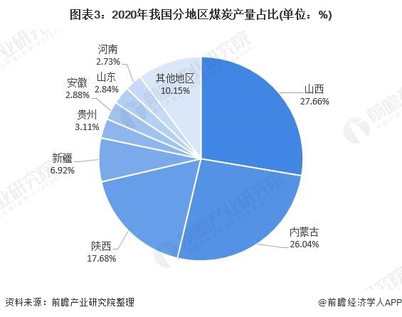 華北地區(qū)歷來(lái)是我國(guó)主要煤炭生產(chǎn)地區(qū),2020年全年我國(guó)煤炭產(chǎn)量累計(jì)為38.44億噸,其中山西和內(nèi)蒙古為煤炭產(chǎn)量最多的兩個(gè)省份,分別占全國(guó)的27.66%和26.04%,合計(jì)占比超過(guò)50%。