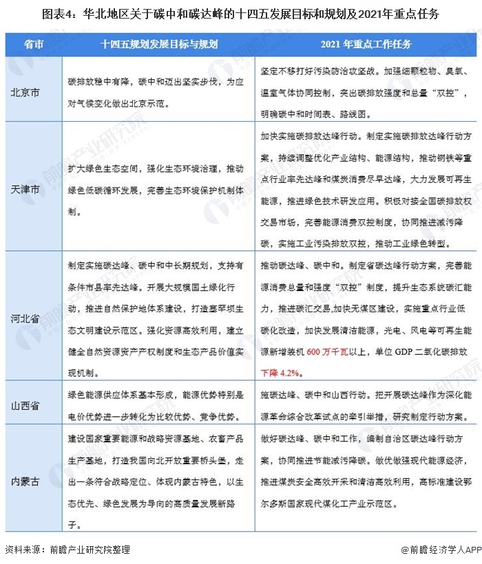 隨著碳中和和碳達(dá)峰任務(wù)目標(biāo)的提出,煤炭又是碳排放的主要能源來(lái)源,因此華北地區(qū)成為我國(guó)傳統(tǒng)能源產(chǎn)能結(jié)構(gòu)調(diào)整的頭號(hào)陣地。華北地區(qū)在碳中和碳達(dá)峰背景下十四發(fā)展的主要目標(biāo)和規(guī)劃和2021年重點(diǎn)任務(wù)是為實(shí)現(xiàn)碳達(dá)峰和碳中和加快傳統(tǒng)能源能源結(jié)構(gòu)的的改革,推進(jìn)煤炭安全高效開(kāi)采和清潔高效利用。
