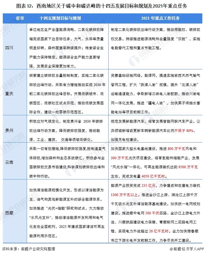 西南地區(qū)包括重慶市、四川省、貴州省、云南省、西藏自治區(qū)共五個(gè)省市區(qū)。西南地區(qū)位處于長(zhǎng)江中上游,覆蓋云貴高原和青藏高原南部,在發(fā)展水力發(fā)電和光伏發(fā)電以及風(fēng)力發(fā)電有較好的自然條件。在西南地區(qū)各省政府在十四五規(guī)劃目標(biāo)和2021年重點(diǎn)工作任務(wù)也主要圍繞著水力發(fā)電和風(fēng)電等新能源發(fā)電項(xiàng)目為主。其中云南和西藏等省份更是在2021年工作任務(wù)中直接提出了相關(guān)項(xiàng)目建設(shè)要求和目標(biāo)。