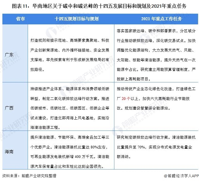 另一方面,華南地區(qū)緊鄰我國(guó)南海,海上資源豐富,發(fā)展風(fēng)能、海洋能和太陽(yáng)能的自然條件優(yōu)越。因此在我國(guó)華南地區(qū)十四五發(fā)展目標(biāo)和2021年重點(diǎn)工作任務(wù)中關(guān)于節(jié)能減排的方向主要是利用沿海資源大力推進(jìn)發(fā)展清潔能源,推動(dòng)傳統(tǒng)產(chǎn)業(yè)生態(tài)化綠色化改造等 。