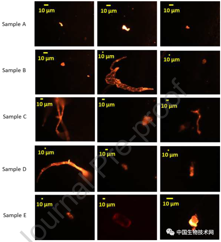 靜置15分鐘后,在20倍熒光顯微鏡下觀察到的微塑料一種分離化學(xué)物質(zhì)的敏感技術(shù)識(shí)別出了熱水中的微塑料。最令人不安的是,對(duì)塑料薄膜的分析發(fā)現(xiàn)襯里中存在重金屬。