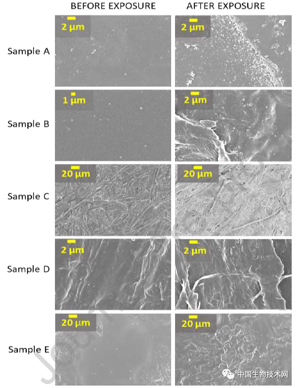 薄膜受熱前后,在掃描電子顯微鏡下放大10000倍的水