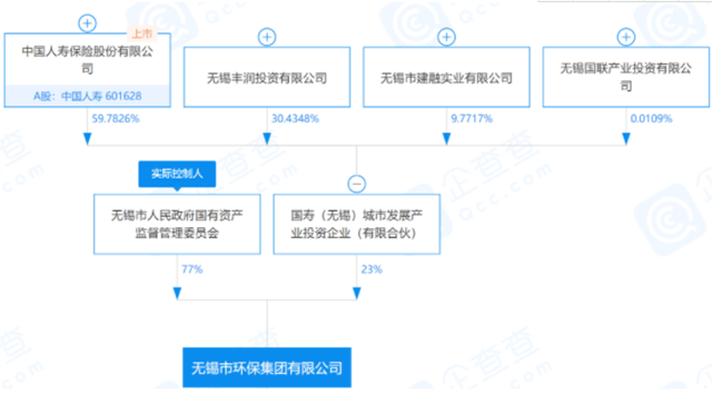 無錫市環(huán)保集團(tuán)有限公司實際控制人為無錫市人民政府國有資產(chǎn)監(jiān)督管理委員會,擁有無錫環(huán)保集團(tuán)77%的股權(quán),另一大股東為國壽(無錫)城市發(fā)展產(chǎn)業(yè)投資企業(yè)(有限合伙),該公司最大股東為中國人壽保險股份有限公司,持股59.7826%。