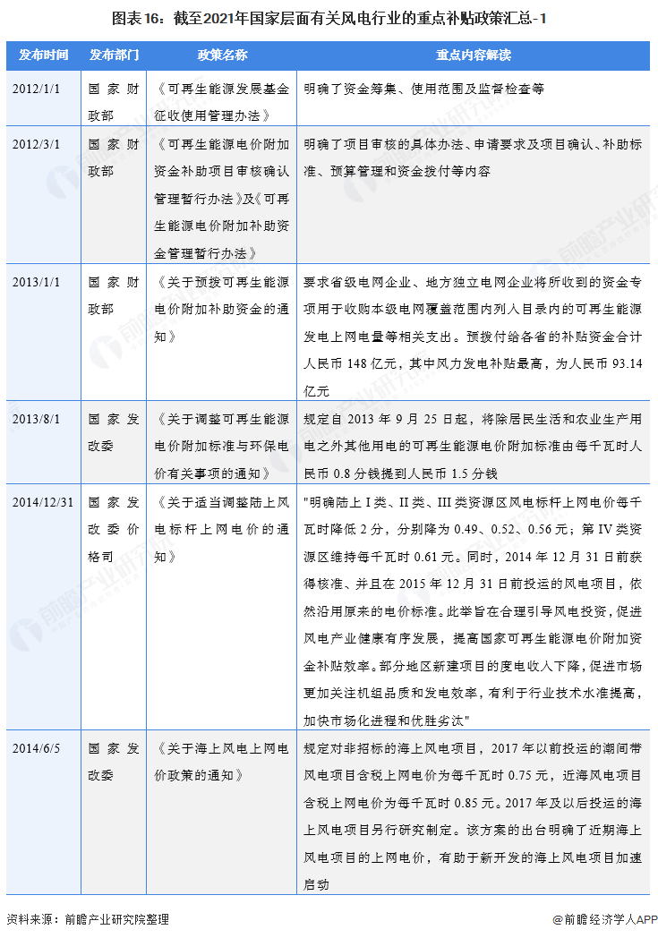 ——國(guó)家層面風(fēng)電補(bǔ)貼政策匯總