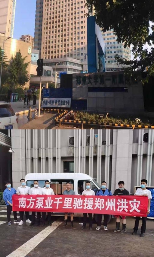 災(zāi)情伊始,南方泵業(yè)駐河南辦事處即便在自身受災(zāi)的情況下,也即刻組織了抗洪救災(zāi)小組,主動聯(lián)系鄭州市自來水公司和亞洲最大的醫(yī)院(鄭州大學(xué)第一附屬醫(yī)院),共同會商搶救搶修方案。南方泵業(yè)以“保民生,穩(wěn)民生”的宗旨,積極抗災(zāi)前線,在第一時間對受災(zāi)嚴(yán)重的民生單位,表達(dá)了水泵的捐贈事宜,以盡快恢復(fù)正常的民生秩序,保障居民的生活用水。