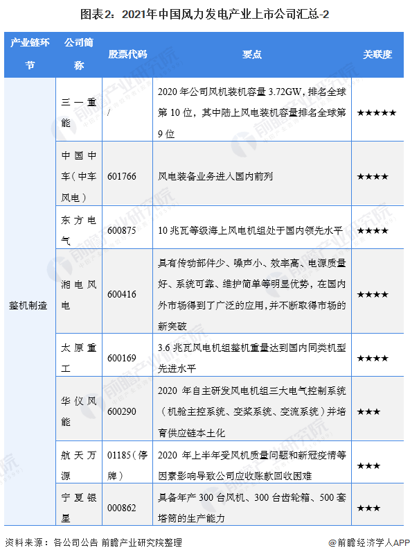 1、 風(fēng)力發(fā)電產(chǎn)業(yè)上市公司匯總