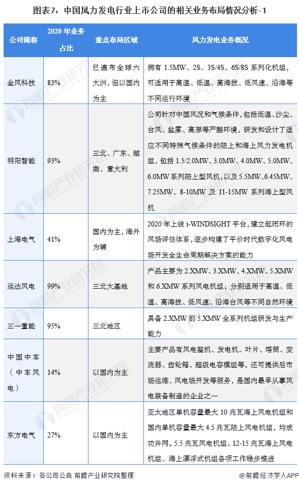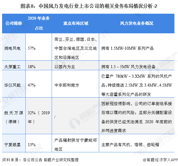 2、 風(fēng)力發(fā)電行業(yè)上市公司業(yè)務(wù)布局對比