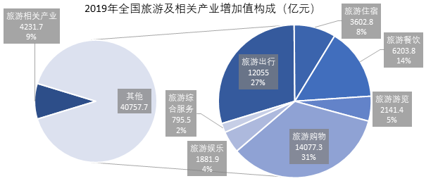 圖1 2019年全國旅游相關(guān)產(chǎn)業(yè)增加值構(gòu)成
