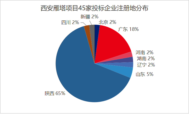 西安市雁塔區(qū)城市道路市場化清掃保潔項(xiàng)目共有來自9個省市區(qū)的45家企業(yè)參與投標(biāo)報價,8個標(biāo)段成交總額1.8852億元/年,服務(wù)期3年,合同金額5.6557億元。