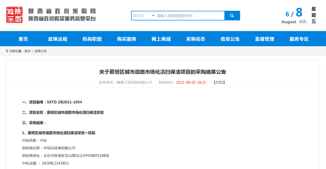 陜西省政府采購網(wǎng)消息,8月5日,西安市雁塔區(qū)城市道路市場化清掃保潔項(xiàng)目開標(biāo)再現(xiàn)大場面。