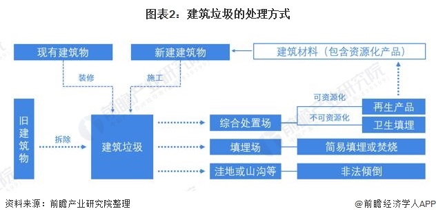 目前我國建筑垃圾處理主要分為兩種方式,一種是建筑垃圾運(yùn)往當(dāng)?shù)亟ㄖ{場,再進(jìn)行資源化、填埋或者焚燒處理;第二種是由建筑垃圾資源化企業(yè)向工程承包商對建筑垃圾進(jìn)行采購,運(yùn)往相關(guān)回收企業(yè)進(jìn)行資源化生產(chǎn)。