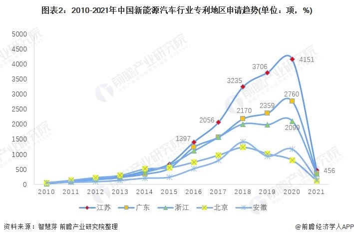1、江蘇省成為中國新能源汽車專利申請最多的省份