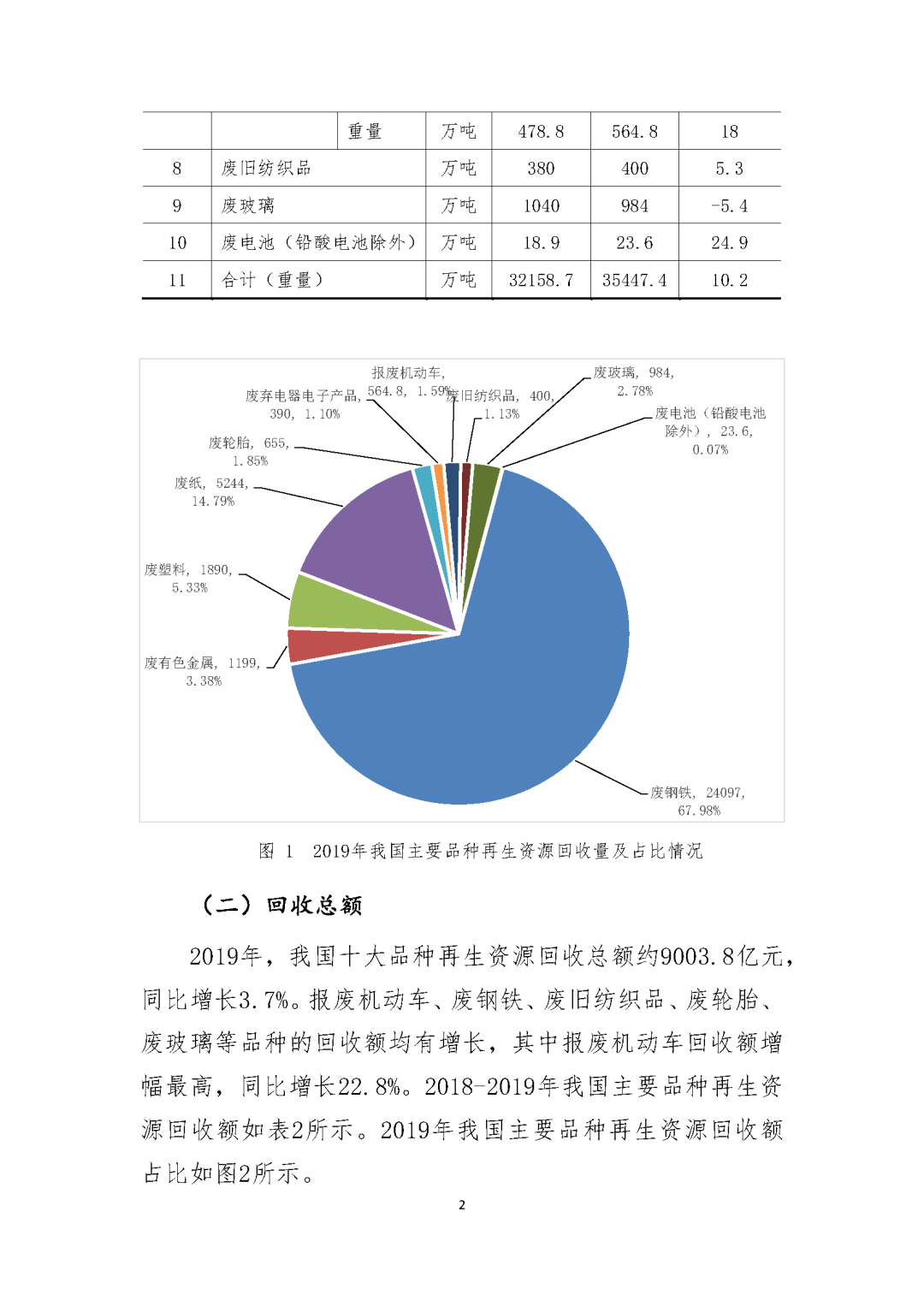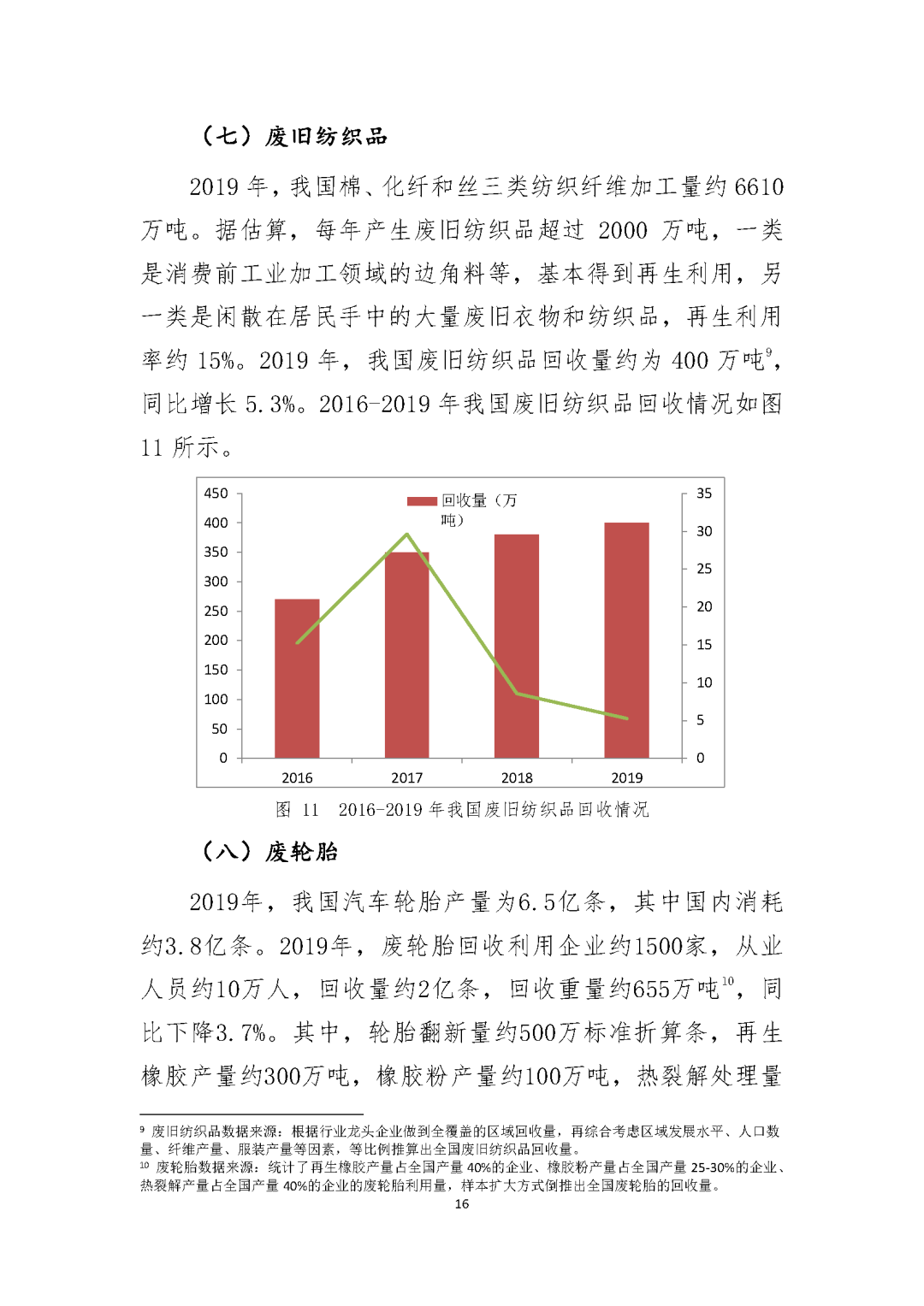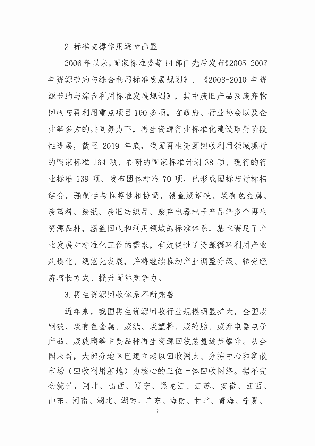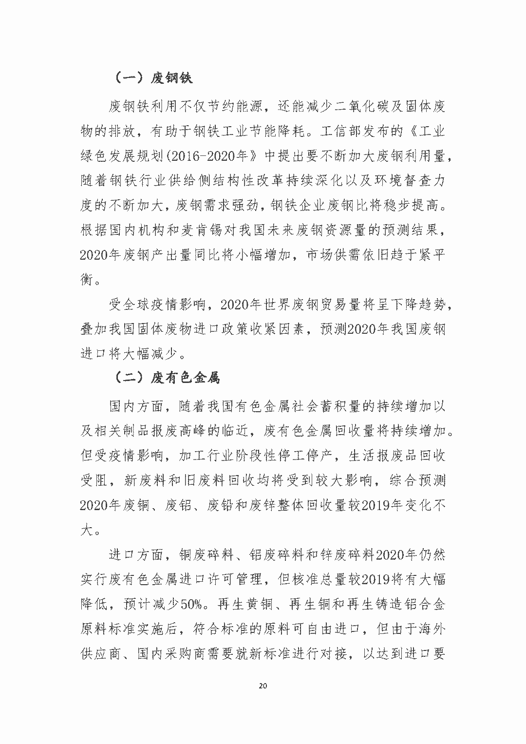 在綠色發(fā)展理念引領下,我國再生資源回收行業(yè)進一步發(fā)展壯大,再生資源回收體系不斷完善,行業(yè)創(chuàng)新升級步伐不斷加快;十大品種再生資源回收總量和回收總額取得新突破,行業(yè)規(guī)模和發(fā)展質(zhì)量進一步提升;深刻影響再生資源回收行業(yè)的多項重大利好政策相繼出臺,我國再生資源回收產(chǎn)業(yè)迎來了新的發(fā)展契機。為全面系統(tǒng)地反映2019年再生資源回收行業(yè)的基本情況,更好地服務企業(yè)和社會公眾,商務部流通業(yè)發(fā)展司整合各方資源,組織編寫發(fā)布《中國再生資源回收行業(yè)發(fā)展報告(2020)》。
