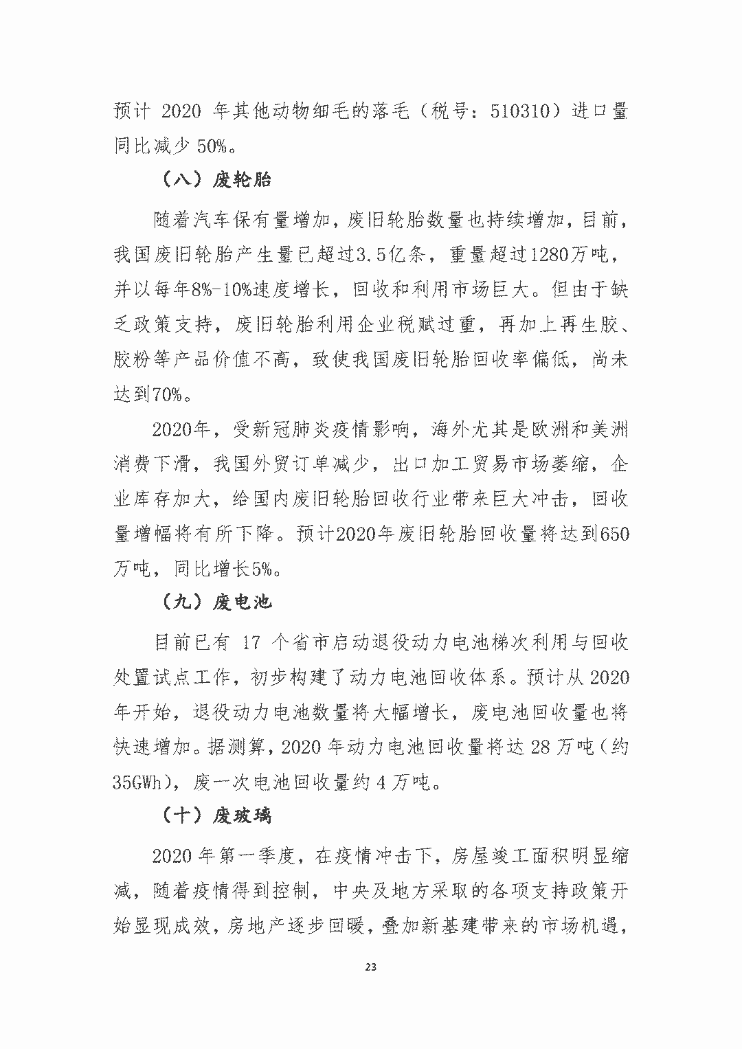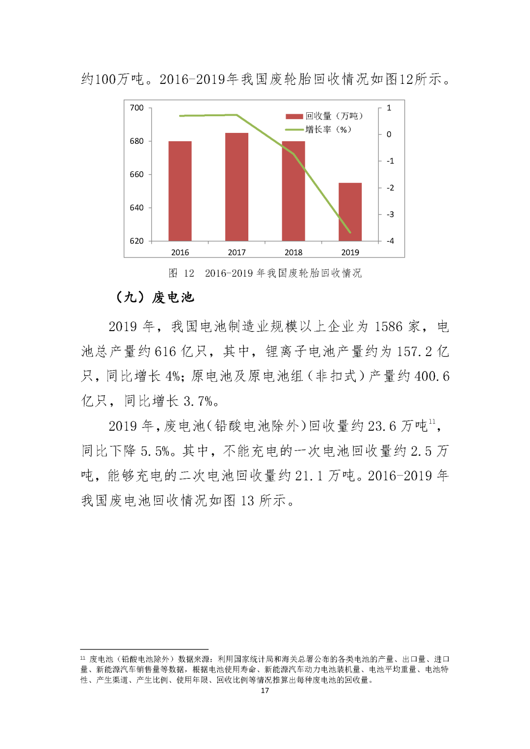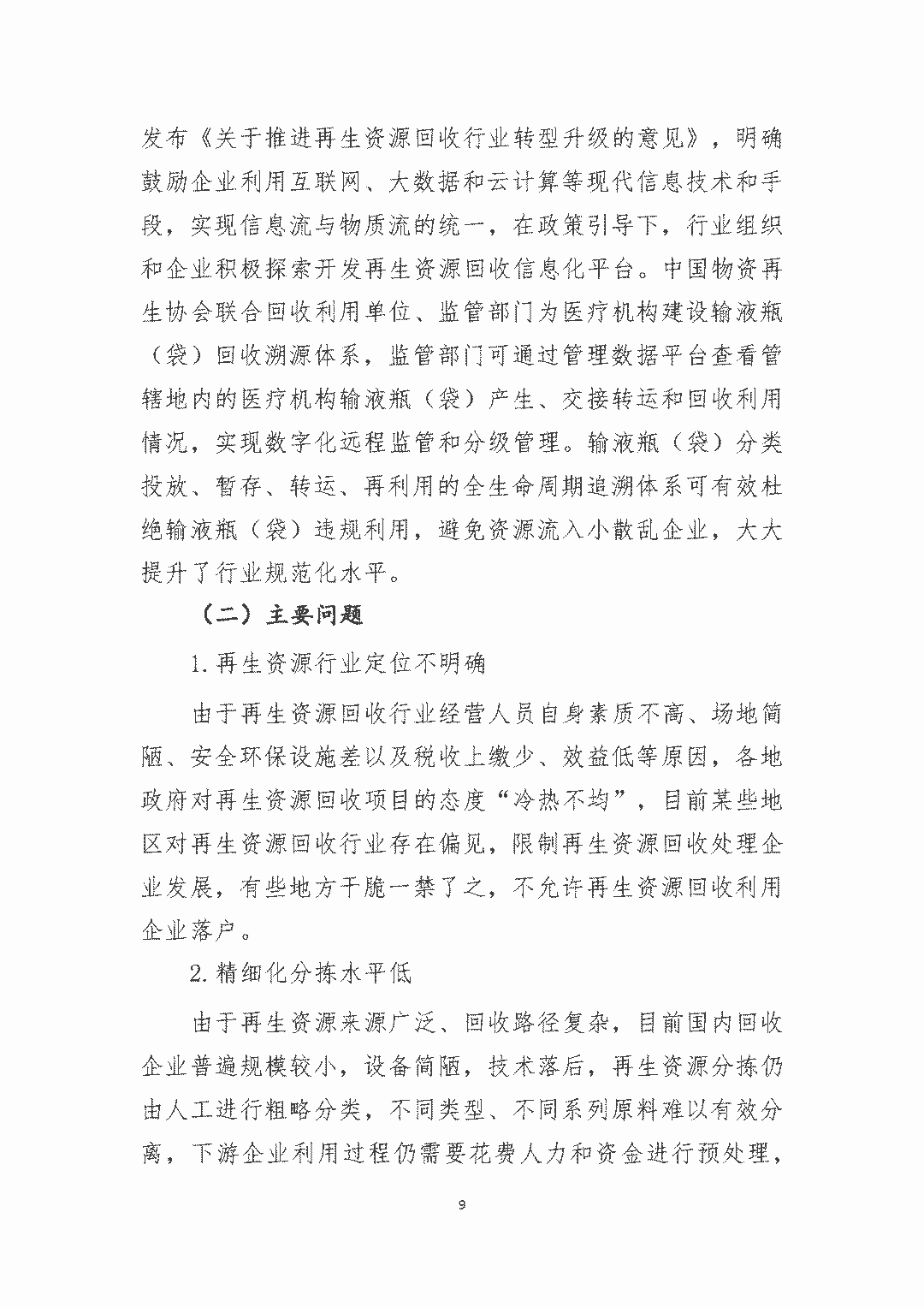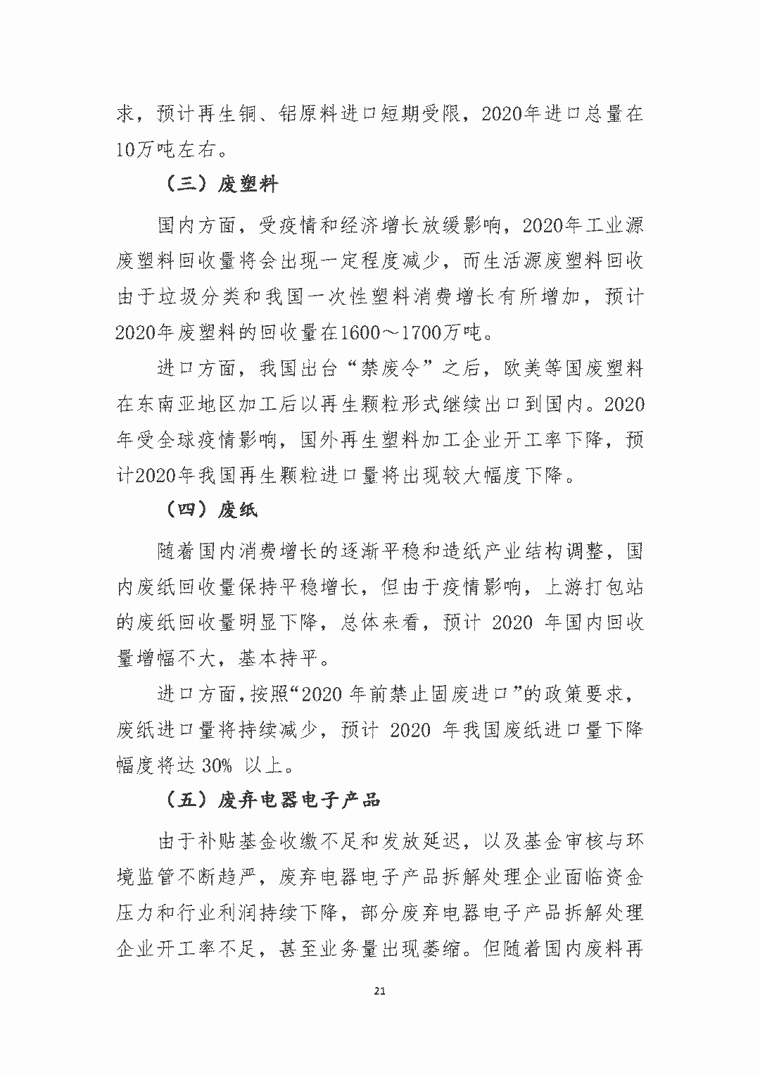 在綠色發(fā)展理念引領下,我國再生資源回收行業(yè)進一步發(fā)展壯大,再生資源回收體系不斷完善,行業(yè)創(chuàng)新升級步伐不斷加快;十大品種再生資源回收總量和回收總額取得新突破,行業(yè)規(guī)模和發(fā)展質(zhì)量進一步提升;深刻影響再生資源回收行業(yè)的多項重大利好政策相繼出臺,我國再生資源回收產(chǎn)業(yè)迎來了新的發(fā)展契機。為全面系統(tǒng)地反映2019年再生資源回收行業(yè)的基本情況,更好地服務企業(yè)和社會公眾,商務部流通業(yè)發(fā)展司整合各方資源,組織編寫發(fā)布《中國再生資源回收行業(yè)發(fā)展報告(2020)》。