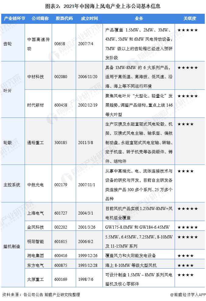 1、 海上風(fēng)電產(chǎn)業(yè)上市公司匯總
