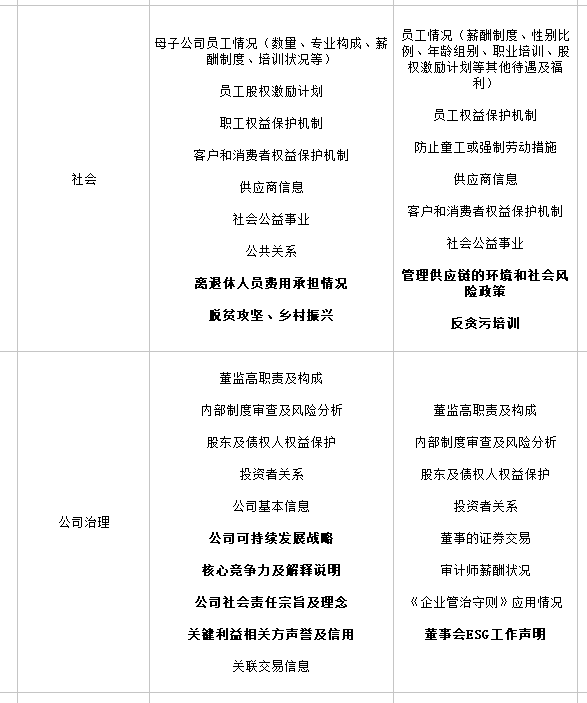 (三)A股和H股上市企業(yè)ESG信息披露標準對比