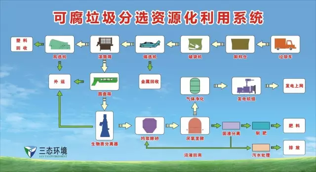以浙江三門縣鄉(xiāng)鎮(zhèn)垃圾處理項(xiàng)目為案例,該項(xiàng)目技術(shù)最大特點(diǎn)為具有優(yōu)良的分選技術(shù)——二次分類自動(dòng)化??梢栽诖迕癯醴值幕A(chǔ)上,經(jīng)機(jī)械自動(dòng)精細(xì)分選,可選出90%以上的可腐爛垃圾,彌補(bǔ)現(xiàn)階段人工分類的不足。前端分選分類工程是三態(tài)的研究重點(diǎn)之一,其開(kāi)發(fā)了小型前端智能分類、大型后端機(jī)械分類。厭氧發(fā)酵工藝也是三態(tài)體系中的重點(diǎn)技術(shù),目前吉林項(xiàng)目已運(yùn)行三年多,是國(guó)內(nèi)較為大型的混合垃圾厭氧發(fā)酵穩(wěn)定運(yùn)行的唯一一家。