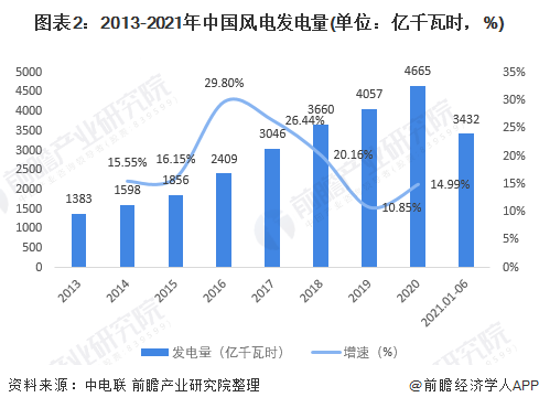 從風(fēng)能發(fā)電的裝機容量來看,2013-2020年,我國風(fēng)力發(fā)電并網(wǎng)裝機容量呈逐漸上升的趨勢。從風(fēng)能發(fā)電量來看,2013-2020年,我國風(fēng)電發(fā)電量呈逐漸上升的趨勢,增速呈波動變化的趨勢。從行業(yè)的發(fā)展增速來看,風(fēng)能發(fā)電行業(yè)的發(fā)展勢頭較好,整體規(guī)模呈現(xiàn)逐年上升的態(tài)勢。