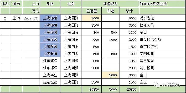 第二名:上海市(25850噸/天)