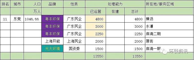 第十一名:東莞市(13550噸/天)