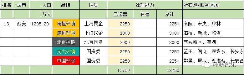 第十三名:西安市(12750噸/天)