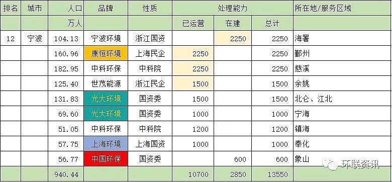 第十二名:寧波市(13550噸/天)