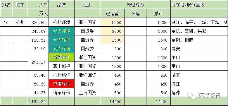 第十名:杭州市(14400噸/天)