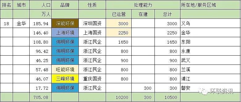 第十八名:金華市(10500噸/天)