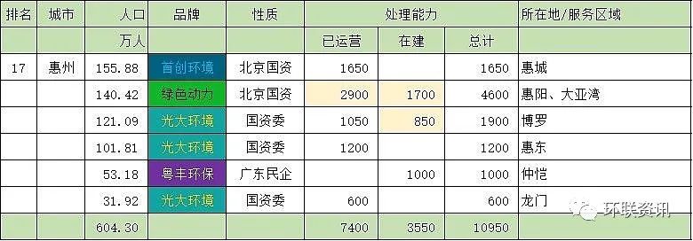 惠州是承接深圳、東莞溢出產(chǎn)業(yè)的先鋒,最近兩年惠州的經(jīng)濟發(fā)展迅速,人口也是急速增加。其中博羅和惠東都成為百萬人口縣城。惠州最大的垃圾發(fā)電廠是惠陽環(huán)境園,已運營+在建產(chǎn)能4600噸/天。但產(chǎn)能利用率不高,以后要協(xié)調(diào)污泥、一般工業(yè)固廢進入環(huán)境園處理?;蓐栱椖恳彩蔷G色動力最大的項目。光大環(huán)境在惠州有三個項目,效率不錯,惠東還計劃建設1500噸/天的三期項目。首創(chuàng)環(huán)境的惠城項目在惠州并不突出,位置也比較偏遠?;葜莸捻椖慨a(chǎn)能有已過剩,擴建的空間不大。