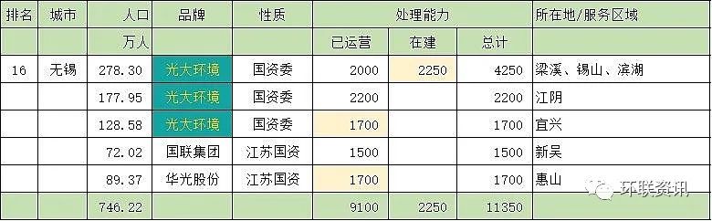 第十六名:無錫市(11350噸/天)