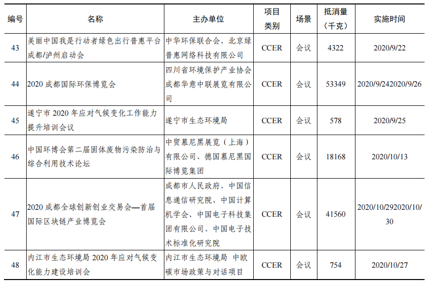 目前,四川已擁有碳中和會(huì)議、展覽、大數(shù)據(jù)中心、園區(qū)、景區(qū)、音樂(lè)會(huì)、婚禮等場(chǎng)景,雅安大數(shù)據(jù)產(chǎn)業(yè)園建成全國(guó)首個(gè)碳中和國(guó)家綠色數(shù)據(jù)中心,青城山—都江堰風(fēng)景名勝區(qū)成為國(guó)內(nèi)首個(gè)碳中和景區(qū)。從集中度看,溫室氣體排放抵消量最大的10個(gè)活動(dòng)(都江堰風(fēng)景名勝區(qū)、第二屆國(guó)際城市可持續(xù)發(fā)展高層論壇、青城山風(fēng)景名勝區(qū)、全國(guó)機(jī)關(guān)事務(wù)文化建設(shè)工作研討會(huì)、2020成都國(guó)際環(huán)保博覽會(huì)、四川省林業(yè)碳匯國(guó)際研討會(huì)、2019天府金融論壇主論壇及發(fā)布會(huì)、2020成都全球創(chuàng)新創(chuàng)業(yè)交易會(huì)—首屆國(guó)際區(qū)塊鏈產(chǎn)業(yè)博覽會(huì)、四川省鐵路產(chǎn)業(yè)投資集團(tuán)公司資產(chǎn)經(jīng)營(yíng)管理人員專題培訓(xùn)班、四川省用能權(quán)交易開(kāi)市活動(dòng)及業(yè)務(wù)培訓(xùn)會(huì)),共抵消溫室氣體2761.3噸,約占全部抵消量的57.2%;成都市碳中和活動(dòng)超過(guò)60場(chǎng)次,最為集中,其次是遂寧市。從活動(dòng)層次看,多以企事業(yè)單位活動(dòng)為主;地方政府組織或參與的活動(dòng)超過(guò)34場(chǎng)次;國(guó)際會(huì)議共有4場(chǎng)次,包括第二屆國(guó)際城市可持續(xù)發(fā)展高層論壇、2020成都國(guó)際環(huán)保博覽會(huì)、四川省林業(yè)碳匯國(guó)際研討會(huì)、2020成都全球創(chuàng)新創(chuàng)業(yè)交易會(huì)—首屆國(guó)際區(qū)塊鏈產(chǎn)業(yè)博覽會(huì)、第三屆國(guó)際城市可持續(xù)發(fā)展高層論壇。環(huán)境類活動(dòng)碳中和超過(guò)40場(chǎng)次,金融機(jī)構(gòu)參與活動(dòng)也相對(duì)較多,凸顯了金融領(lǐng)域和環(huán)境領(lǐng)域的理念引領(lǐng)作用。