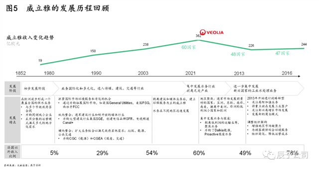 任何大企業(yè)的長(zhǎng)成都不是一日之功,全球生態(tài)環(huán)保巨頭威立雅的發(fā)展之路照樣坎坷,歷經(jīng)160年發(fā)展,直到上世紀(jì)80年代后才真正開始走上快速發(fā)展的道路,經(jīng)歷了之后30年的擴(kuò)張(見圖5)。