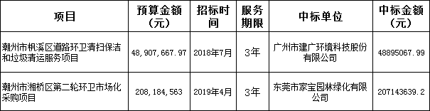2019年4月份,潮州市湘橋區(qū)第二輪環(huán)衛(wèi)市場化采購項目公開招標,預(yù)算金額為208,184,563元,服務(wù)期為3年,最終,東莞市家寶園林綠化有限公司以207143639.19元的價格中標。