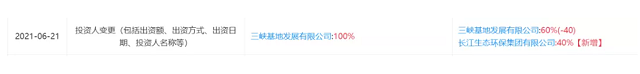 根據(jù)企查查資料顯示,今年6月,三峽環(huán)境投資人發(fā)生變更,長江環(huán)保集團(tuán)入股,持有該公司40%股權(quán)。