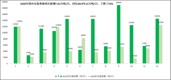 圖四:2020年國內(nèi)垃圾焚燒項(xiàng)目中標(biāo)新增7.43萬噸/日產(chǎn)能▼