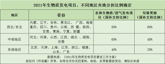 ?東部地區(qū)(北京市、天津市、上海市、江蘇省、浙江省、福建省、山東省、廣東?。┺r(nóng)林生物質(zhì)發(fā)電和沼氣發(fā)電項(xiàng)目中央支持比例為40%;垃圾焚燒發(fā)電項(xiàng)目中央支持比例為20%。