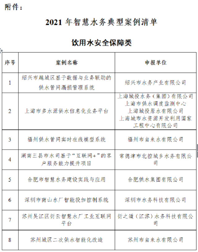 關(guān)于發(fā)布2021年智慧水務(wù)典型案例的通知